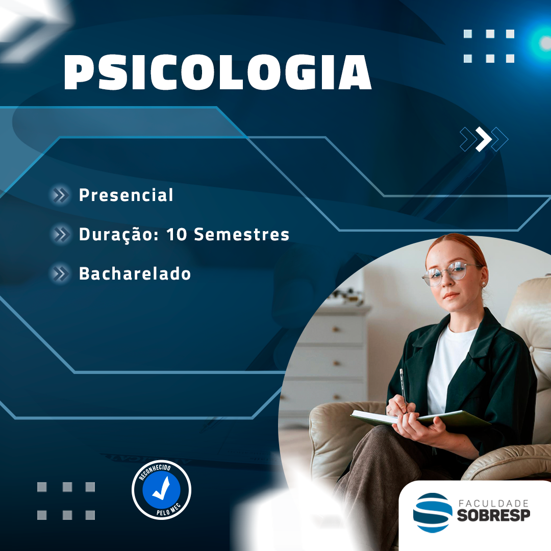 O curso de Psicologia da Faculdade SOBRESP gradua psicólogos para desenvolver a capacidade de raciocínio, observação e compreensão dos fenômenos e processos mentais, grupais e sociais de forma a utilizar técnicas e métodos do âmbito psicológico de forma ética e competente. O profissional graduado na SOBRESP sai apto para realizar um trabalho integrado com outras áreas de atuação ou outros profissionais.